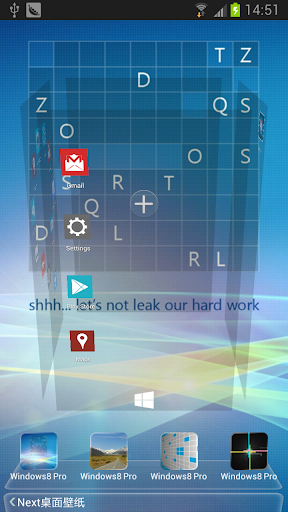Windows8 Pro Launcher Suivant theme.80 + icônes spéciales, 10 fonds d'écran HD du sujet, 5 icônes de base.